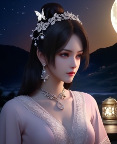 <lora:843-DA-XL-元龙-宋嫣:0.8>, (,1girl, ,best quality, ),,masterpiece(,1girl,night, starry sky, milky way,outdoors, full moon,  night sky, darkness,  world of darkness, , ) ,ultra realistic 8k cg,   clean, masterpiece,     (( , )),, , , prestige, luxury, jewelry, diamond, gold, pearl, gem, sapphire, ruby, emerald, intricate detail, delicate pattern, charming, alluring, seductive, erotic, enchanting, hair ornament, necklace, earrings, bracelet, armlet,halo((, )), (), butterfly,