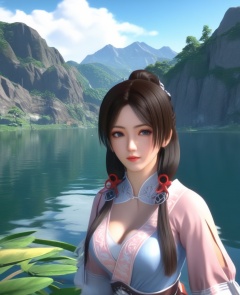 <lora:843-DA-XL-元龙-宋嫣:0.8>, (,1girl, ,best quality, ),,  ,ultra detailed 8k cg,   ,masterpiece, (( , )) , lake,upper body,   (cleavage),,  (),