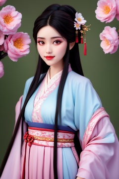 1girl, solo, realistic, hair ornament, long hair, flower, hanfu, chinese clothes, looking at viewer, upper body