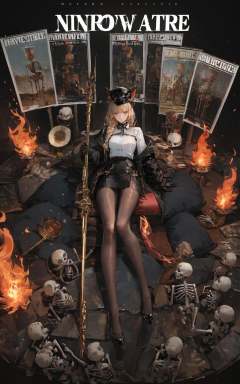 XUER guangying,<lora:绪儿光影滤镜XUER guangying:0.8>,score_9,score_8_up,score_7_up,score_6_up,score_5_up,score_4_up,black background,XUER guangying,1girl,solo,long hair,breasts,looking at viewer,bangs,skirt,blonde hair,brown hair,shirt,gloves,long sleeves,hat,holding,animal ears,jacket,tail,full body,white shirt,weapon,braid,pantyhose,open clothes,black skirt,off shoulder,black footwear,holding weapon,high heels,open jacket,black jacket,black pantyhose,black headwear,fire,brown pantyhose,holding polearm,skeleton,highly detailed,ultra-high resolution,32K UHD,sharp focus,best-quality,masterpiece,Emotionalization,golden hour,unconventional supreme masterpiece,masterful details,temperate atmosphere,with a high-end texture,in the style of fashion photography,magazine cover,on back,