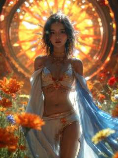 xuer Chinese goddess,1girl,jewelry,flower,navel,solo,breasts,dark-skinned female,black hair,dark skin,earrings,necklace,backlighting,looking at viewer,blurry background,see-through,bare shoulders,lips,bra,brown eyes,parted lips,depth of field,cowboy shot,yellow flower,standing,indoors,hair ornament,white bra,red lips,underwear,small breasts,collarbone,long hair,gem,holding,<lora:绪儿-中国女神xuer Chinese goddess:0.75>,<lora:xuer a sense of story girl_20240320200924:0.5>,