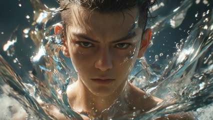 (8k, RAW photo, highly detailed,masterpiece, highest quality),rich colors,high contrast,full shot body photo of the most beautiful artwork in the world,cinematic light,fantasy,highres,xuer film still,solo,looking at viewer,short hair,black hair,1boy,closed mouth,upper body,male focus,water,black eyes,serious,realistic,bald,<lora:绪儿电影剧照-xuer film still:0.8>,