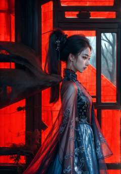 (masterpiece,top quality,best quality,official art,beautiful and aesthetic:1.2),neon lights,science fiction,xuer Palace gate,upper body,Dynamic Angle,Dynamic posture,Perspective,High Point,pov,1girl,extremely beautiful face,stunning face,perfect face,best face,extremely attractive,gorgeous,detailed face,highly detailed,realistic,hyper-realistic,IMAX,HD,8K resolutions,ultra-high resolutions,best quality,masterpiece,A shot with tension,(Visual impact,giving the poster a dynamic and visually striking appearance:1.2),Chinese Zen style,impactful picture,<lora:绪儿-宫xuer Palace gate:0.8>,