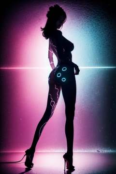 (silhouette:1.5),cury,1girl,solo,standing,long hair,breasts,nude,full body,glowing,ass,(glowing full- body tattoo:1.3),high_heels, green theme,Epic CG masterpiece, hdr,dtm, full ha,8K, ultra detailed graphic tension, dynamic poses, stunning colors, 3D rendering, surrealism, cinematic lighting effects, realism, 00 renderer, super realistic, full - body photos, super vista, super wide Angle, HD,<lora:绪儿-剪影curvy:0.8>