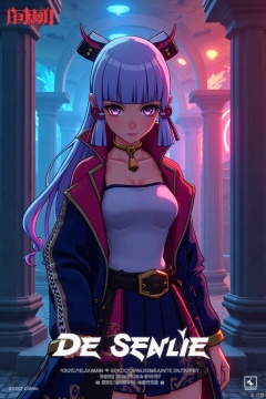 1girl, solo, long hair, movie poster style, half-body shot, centered composition, dramatic lighting, cinematic atmosphere, wearing a stylish outfit, intense expression, background featuring bold colors and abstract elements, text overlay in bold movie poster font, high contrast, detailed textures, visually striking design.