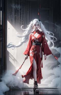 (dramatic, gritty, intense:1.4),masterpiece, best quality, 32K,insane details, intricate details, hyperdetailed, hyper quality, high detail, ultra detailed, Masterpiece, (full body:1.4), Red eyes,(white hair:1.6),twintails,an girl in a red dress is in front of white eyes, Unreal background, smoke and mist, like something coming out. Chinese Taoist ghost legend,horror-inspired, Chinese Horror,dollcore, dark violet and light blue, contrast between light and dark,photo-realistic hyperbole, japonism influenced pieces, cryptidcore,Junji Ito, miho hirano, ilya kuvshinov, Yimou Zhang, Thick paintings, oil paintings, ink drawings,cinematic textures, top view, extreme close-ups, REALISTIC 3D, ULTRA DETAILED. Blender, C4D, high detail, high resolution,A shot with tension,(sky glows red,Visual impact,giving the poster a dynamic and visually striking appearance:1.2),Chinese Zen style,impactful picture,<lora:绪儿-红衣女鬼:0.8>