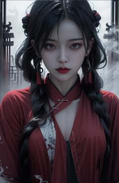 (dramatic, gritty, intense:1.4),masterpiece, best quality, 32K,insane details, intricate details, hyperdetailed, hyper quality, high detail, ultra detailed, Masterpiece, (full body:1.5), Red eyes,an girl in a red dress is in front of white eyes, Unreal background, smoke and mist, like something coming out. Chinese Taoist ghost legend,horror-inspired, Chinese Horror,dollcore, dark violet and light blue, contrast between light and dark,photo-realistic hyperbole, japonism influenced pieces, cryptidcore,Junji Ito, miho hirano, ilya kuvshinov, Yimou Zhang, Thick paintings, oil paintings, ink drawings,cinematic textures, top view, extreme close-ups, REALISTIC 3D, ULTRA DETAILED. Blender, C4D, high detail, high resolution,A shot with tension,(sky glows red,Visual impact,giving the poster a dynamic and visually striking appearance:1.2),Chinese Zen style,impactful picture,<lora:绪儿-红衣女鬼:0.8>