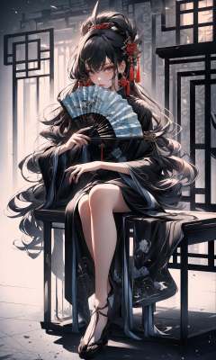 (Masterpiece),(best quality),((masterpiece)),(highres), (original:1.8), (extremely detailed 8K wallpaper), overexposure,1girl, close-up, (fan:1.1),(full body:1.5),Chinese style clothes,Chinese Han clothing,White and blue Taoist robe,earrings,Long hair,crossed bangs, cum_in_mouth,(Upper body),sitting,<lora:绪儿-扇子fan:1>