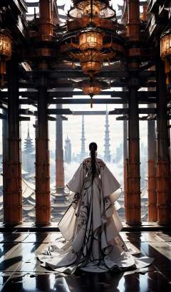 (dramatic, gritty, intense:1.4),masterpiece, best quality, 32k, insane details, intricate details, hyperdetailed, hyper quality, high detail, ultra detailed, Masterpiece, elaborate Hanfu,(red Hanfu:1.4),(Chinese architecture:1.5),red,1 girls, smoke,fog,A high fashion model, in an elaborate Hanfu designed by Alexander McQueen, stands amidst a bustling metropolis' futuristic architecture. This full body shot for Vogue, captured by Andreas Gursky, melds tradition and modernity,<lora:绪儿-﷿定汉服:0.9>