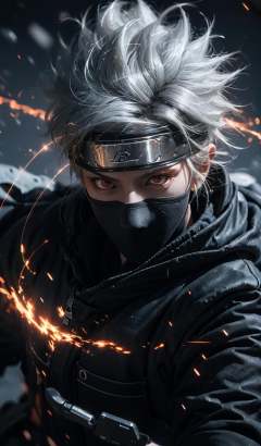 (dramatic, gritty, intense:1.4),masterpiece, best quality, 8k, insane details, intricate details, hyperdetailed, hyper quality, high detail, ultra detailed, Masterpiece,upper body, close-up,(imid shot,macro shot:1.25),(red eyes:1.5),(white hair:1.2),1boy, Kakashi Hatake in Naruto, holographic reality, holographic halo, motion blur, game light effect, rim light, soft light, movie rim light, delicate light, cyberpunk style, oil painting texture, full length shot, 3D artist, detailed, futuristic, lightning,  <lora:Kakashi Hatake_20230802113200:0.8>