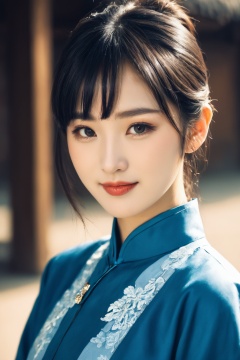 beautiful girl, (smirk:0.4), chinese blue clothes