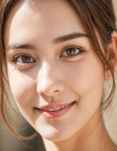 beautiful lady, smirk, brown hazel eyes, hyperdetailed photography, soft light, head and shoulders portrait,