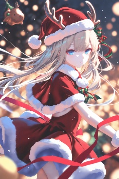 christmas,transparent,Torino,Goth_scenario,Melting,lightshadow,artist: wlop,artist:chen_bin,[[artist:ke-ta]],artist: sheya,artist: hitenkei,good work,(best quality),illustration,depth of field,(color),masterpiece,best quality,petite,cute,loli,elk,masterpiece,best quality,high quality,loli,1girl,horns,solo,Christmas hat,ribbon costumes,