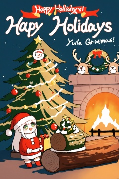 christmas,blue,juanyang,0,matcha,festive holiday scene,four characters,two in background,green sweater reindeer,brown sweater santa,foreground character seated,white hair green eyes,red outfit fur trim,decorated christmas trees,garlands wreath,table yule log,various holiday foods,happy holidays! text,pokiras artwork,reposting prohibited,group celebrating,Christmas together,at home,festive holiday scene,two in background,Santa outfit,cozy atmosphere,wreath,Yule log cake,Santa hat,four characters,reindeer antlers,Christmas decorations,garlands,Christmas tree,