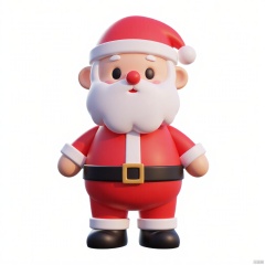 a Santa Claus figurine stands against a stark white backdrop. The figurine, dressed in a red and white suit, adorned with a black belt and a gold buckle. The Santa Claus is adorned with black eyes, a red nose, and a white beard. His ears are perked up, adding a pop of color to the scene.