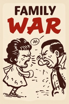 manhua,A poster with the title 'Family War', a man and a woman fight, women and men criticize each other, fight each other, anger, tension,
