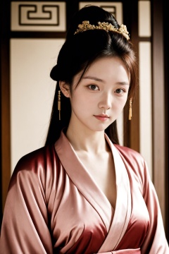 girl, pink chinese clothes, realistic skin, skin pores, upper body, film grain, realistic, photorealistic, indoors, chinese style architecture