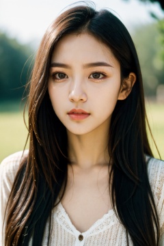 1girl, solo, film grain, realistic, photorealistic, long hair, looking at viewer, black hair, parted lips, black eyes, upper body, outdoors,