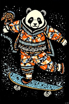 scribble art,ink splatter,wilderness,splash ink painting,abstract,colorful,Vague dreams,Dynamic energy,publish creation,visual impact,modern aesthetic,Elegant and simple,Contemporary interpretation,be bold,black background,Grunge style, A piece of clothing, (Cute panda running on skateboard: 1.2), (There are many official documents and glasses inserted in the back), Hip hop fashion design style, ,The moment when ink splatters,Stir up huge colorful waves,Gorgeous, panoramic, Ultra high saturation, (best quality, masterpiece, Representative work, official art, Professional, 8k),Paper cutting,cgart illustration