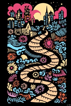 Anime style,dynamic composition,backlit silhouette effect outlines the silhouette of character,mengjing,bpd,On the black and white clean plain,there is a winding crack. The crack is a colorful world,colorful buildings,colorful lands,colorful animals and plants,and colorful clouds. It is full of magical feeling. It forms a strong sense of high definition,4K,clarity and illustration with the white clean in,plantings of and dopamine out a high,the world in the crack can be beyond the crack,but not beyond much,at the end of the crack is a white cloud,and a round moon,a black plain,a colored crack,a strange world,colorful animals and plants,etc.,cgart illustration,Paper cutting