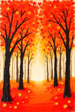 oil pastels,outdoors, tree, no humans, leaf, nature, scenery, forest, autumn leaves, maple leaf, autumn, orange theme