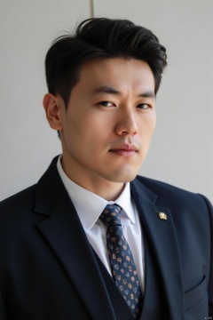 A picture of a man,male focus,solo,hansome,charming,suit,shirt,masterpiece,realistic,best quality,highly detailed,highres,jzns,zuk