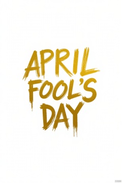 Font design, simple background, white background, gold letters, scribbling, brush strokes, tilted dynamic, text layout art, creative hand-drawn font design, monochrome, English text, artistic composition, text "APRIL FOOL'S DAY "
