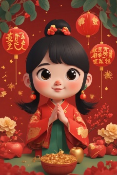 No human, Peace, guochao,guo chao, Chinese style, red background, festive, apple, Chinese knot, New Year, firecrackers, blessing,Little flower, little star,movie texture, great work, best picture quality, best work, 8k, clear details, rich details