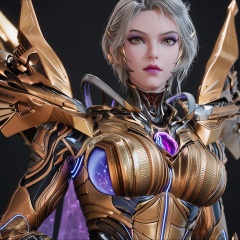1girl,solo,<lora:YQponyjiuhuangnvV2:0.8>,short_hair,science_fiction,wings,mechanical_wings,score_9,lips,breasts,makeup,grey_hair,realistic,purple_lips,armor,white_hair,bodysuit,lipstick,glowing,grey_eyes,brown_eyes,blue_hair,robot,blue_eyes,eyeshadow,high_heels,claws,yellow_eyes,BREAK score_9,upper_body,portrait,shiny_skin,looking at viewer,cinematic lighting,volumetric lighting,solo focus,(huge breasts:0.9),(simple background,pure black background,black background:1.1),