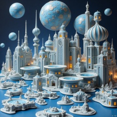 A city made of porcelain, porcelain, science fiction space, spaceship