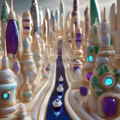 现代城市,A city made of porcelain, porcelain, science fiction space, spaceship,珠宝,jewelry,高清,杰作