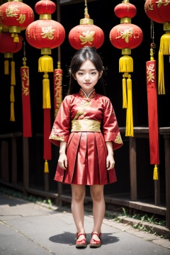 <lora:ChineseNewYear:0.8>, chinese new year, girl, (smirk:-0.4), long hair, arms at sides, red chinese clothes, paper lantern, full body, leather shoes, (chibi:0.5),