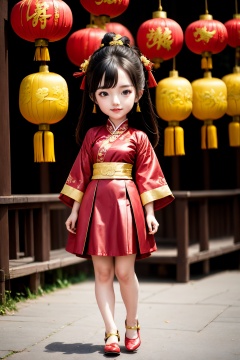 <lora:ChineseNewYear:0.8>, chinese new year, girl, (smirk:-0.4), long hair, arms at sides, red chinese clothes, paper lantern, full body, red leather shoes,