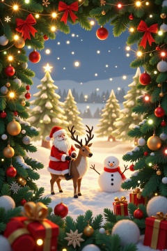 Miniature landscape, wool felt art, Christmas, cute Santa Claus, elk, gift, snowman, winter, Christmas tree, red and green lively atmosphere, warm lights, starlight, isometric view, cute style, stop motion animation, tilt move, Warm lighting, Unreal Engine rendering, cinematic imagery, ultra-fine details, ultra-high quality, 8k, Christmas Frame Scene