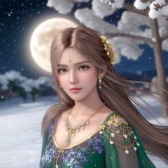 <lora:847-DA-XL-死或生-Elise-BirthdaySuit-20220903:0.8>, (,1girl, ,best quality, ),,  picture-perfect face,   clean, masterpiece,     cinematic lighting, cinematic bloom, fantasy,  , unreal, science fiction, ((,1girl, pov,))(((,tree, 1girl, full moon,snowing,snow ,solo,     solo focus,  long_hair, looking_at_viewer,  )))  (rich:1.4,)     prestige, luxury, jewelry, diamond, gold, pearl, gem, sapphire, ruby, emerald, intricate detail, delicate pattern, charming, alluring, seductive, erotic, enchanting, hair ornament, necklace, earrings, bracelet, ,