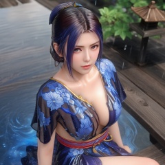 <lora:847-DA-XL-死或生-Elise-BirthdaySuit-20220903:0.8>, (,1girl, ,best quality, ),,  ,(Highest picture quality), (Master's work), , (ultra-detailed), the portrait is centered, 1girl, raiden shogun, nsfw, (wet clothes), blush, bare hips, (sheer shirt), (from above:1.7), (translucent dress), water drop, (rain), (outdoors), stained, wet hair, wet dress, wet, scenery, (long hair), nature background, close up, ((on back)), water,masterpiece, best quality, ultra high res, highly detailed, (abstract expressionism art:1.4), [girl | fire ghost:10], love,, dark rainbow theme, colorful, visually stunning, beautiful, gorgeous, emotional, intricate, perferct shading, rainbow hair,(sit),  ,(cleavage),,