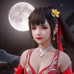 <lora:848-DA-XL-完美世界-火灵儿-幼年:0.8>, (,1girl, ,best quality, ),,  ,,ultra realistic 8k cg, ,masterpiece, (( , )),, realistic,science fiction,mole, ,     ,crescent moon, jasmine \(flower\),     (cleavage),,  (),