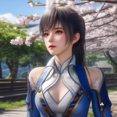 <lora:849-DA-XL-斗罗大陆-唐雅:0.8>, (,1girl, ,best quality, ),,  ultra realistic 8k cg,ultra detailed 8k cg,masterpiece,upper body,  (( , )),, ,science fiction,mole, ,    ,outdoors, sun,sunlight, cherry blossoms,      (cleavage),,  (),