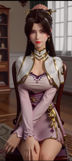 (high definition, Best quality, masterpiece, 4K, exquisite skin), 1girl, solo, legs, looking at viewer, in room, sitting