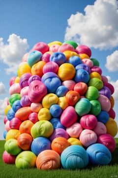 hs,giant yarn ball,(Wool material:1.4),colorful wool,Outdoor,(floral:1.2),(grass:1.2),blue sky,white clouds,colorfulflowers,natural scenery,dreamy,materpiece,best quality,multicolored hair,(colorful:1.1),(in spring:1.1),park,(bright tones:1.2),(bright colors:1.2),(forest:1.2),no humans,architecture,white background,scenery,building,simple background,pagoda,stairs,