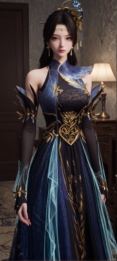 (high definition, Best quality, masterpiece, 4K, exquisite skin), 1girl, solo, breasts, looking at viewer, in room, turn round