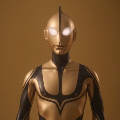 ultraman,golden bodysuit,golden gloves,legwear,gloves,boots,cover,mask,plugsuit,armor,bodysuit,black pattern on body,golden tight-fitting,golden footwear,helmet,leather suit,latex,tokusatsu,no humans,science fiction,golden head,hard mask,no smile,no eyes,no nose,solo,golden rubber bodysuit with black line