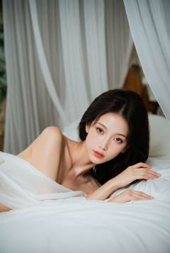 (score_9,score_8_up,score_7_up,score_6),hanfu,simple,(blurry background:1.1),blurry,(blurry foreground:1.1),In a richly adorned Chinese interior, beautiful and naked woman figure reclines on a luxurious canopy bed draped with silk, surrounded by attendants in traditional garments, amidst intricate latticework and classical motifs. masterpiece,best quality,high-resolution image,