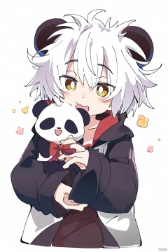 1boy,beautiful,cute,Little boy with white hair, panda ears and golden eyes,single person,messy hair,