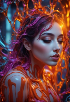 1 woman, crystals rays of lights refraction surreal orange and purple Alberto Seveso (masterpiece, photorealistic) (best quality) (dramatic lighting ) (sharp focus),exposure blend, medium shot, bokeh, (hdr:1.4), high contrast, (cinematic, teal and orange:0.85), (muted colors, dim colors, soothing tones:1.3), low saturation,HARUKA,AIDMAFLUXPROULTRA,COLPAIDRI  PAINT COLORFUL DRIPPING,Aerith Gainsborough,