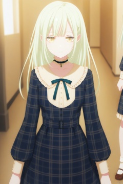 Wakaba Mutsumi,long hair,green hair,bangs,blunt bangs,yellow eyes,hair ornament,hairclip,