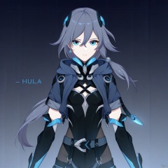 HUA_MSA_209,hair between eyes,blue eyes,grey hair, blue hair, long hair,low-tied long hair,hoodie,leotard under clothes,blue legwear,open clothes,belt,boots,black shorts,hood jacket,black legwear,black footwear,leotard,elbow gloves,black leotard,