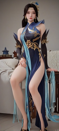 score_9,score_8_up,(high definition, Best quality, masterpiece, 4K, exquisite skin), 1girl, solo, breasts, looking at viewer, room, side slit, sitting, high heels,