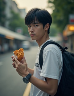 HDR photo of cinematic film still HDR photo of cinematic film still, filmhalo,1boy,male focus,headset,black hair,solo,bag,shirt,watch,holding food,white shirt,backpack,wristwatch,upper body,realistic,looking at viewer,short sleeves,holding,black eyes,day,short hair, . shallow depth of field, vignette, highly detailed, high budget, bokeh, cinemascope, moody, epic, gorgeous, film grain, grainy . High dynamic range, vivid, rich details, clear shadows and highlights, realistic, intense, enhanced contrast, highly detailed