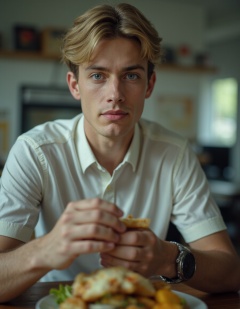 HDR photo of cinematic film still HDR photo of cinematic film still 1boy,male focus,blonde hair,solo,shirt,watch,holding food,white shirt,upper body,realistic,looking at viewer,short sleeves,holding,black eyes,day,short hair,office, . shallow depth of field, vignette, highly detailed, high budget, bokeh, cinemascope, moody, epic, gorgeous, film grain, grainy . High dynamic range, vivid, rich details, clear shadows and highlights, realistic, intense, enhanced contrast, highly detailed . shallow depth of field, vignette, highly detailed, high budget, bokeh, cinemascope, moody, epic, gorgeous, film grain, grainy . High dynamic range, vivid, rich details, clear shadows and highlights, realistic, intense, enhanced contrast, highly detailed